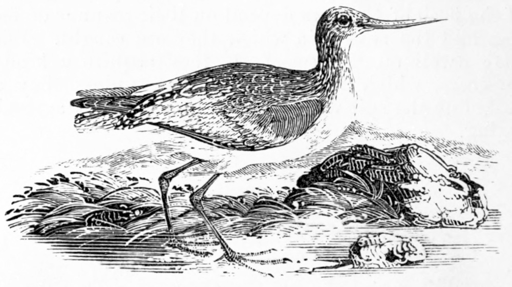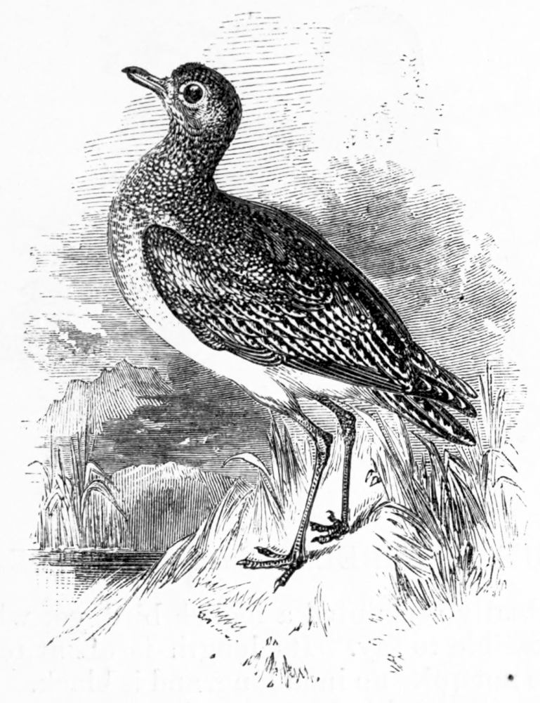 V. Waders (Grallæ).—Having a roundish bill, a fleshy tongue, and the legs naked above the knees, as the herons, plovers, and snipes.