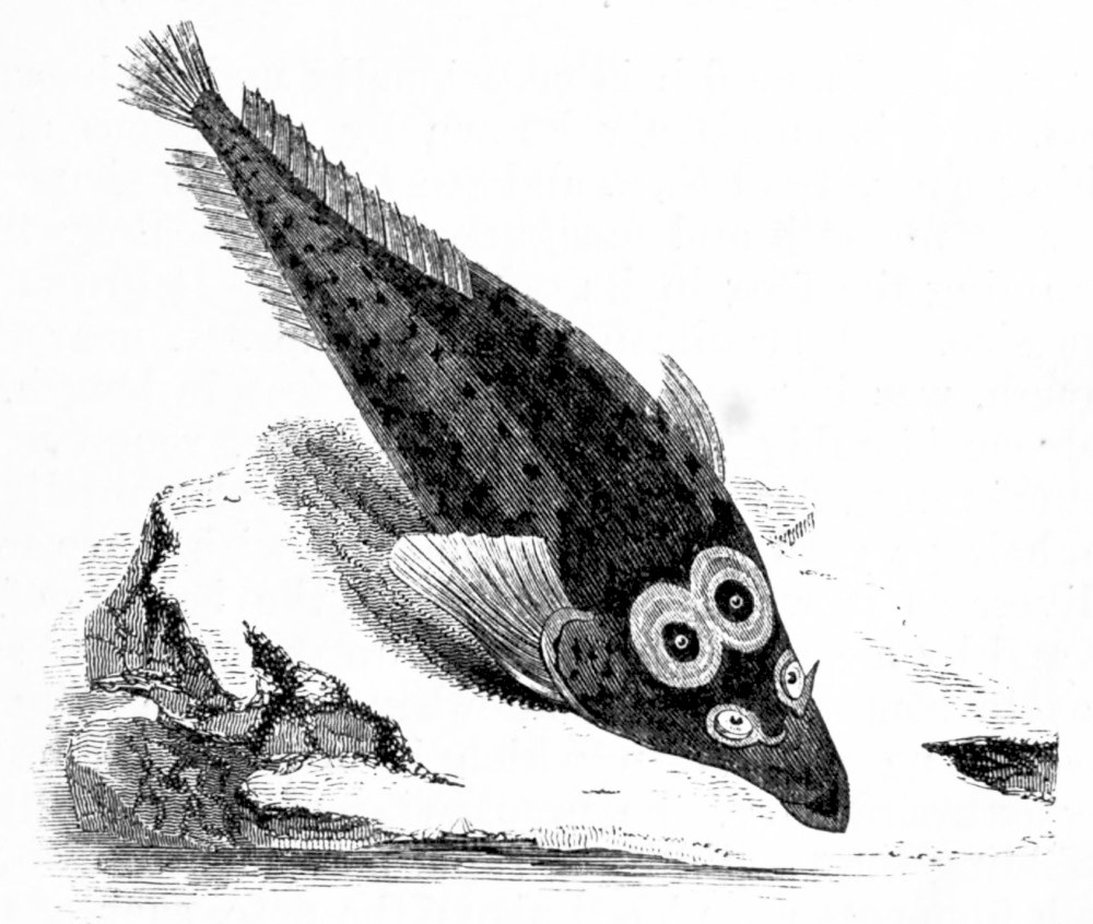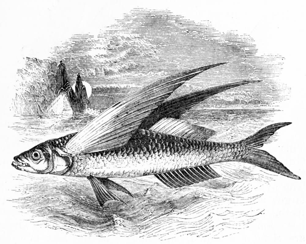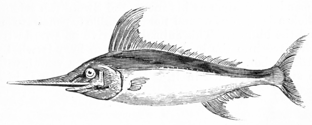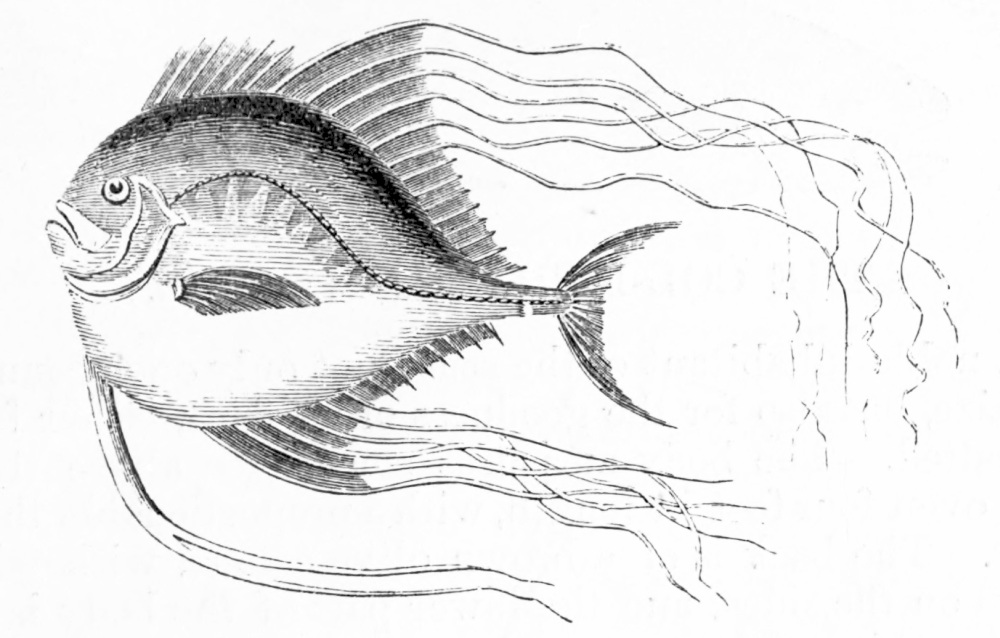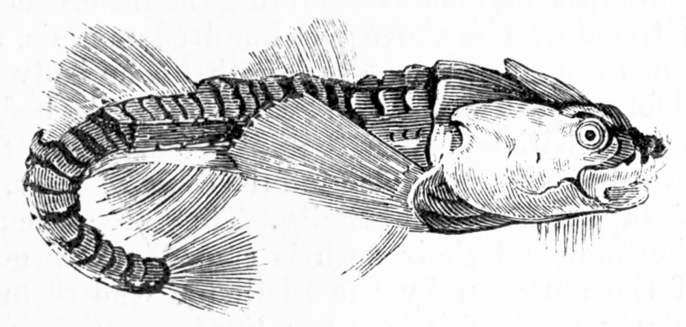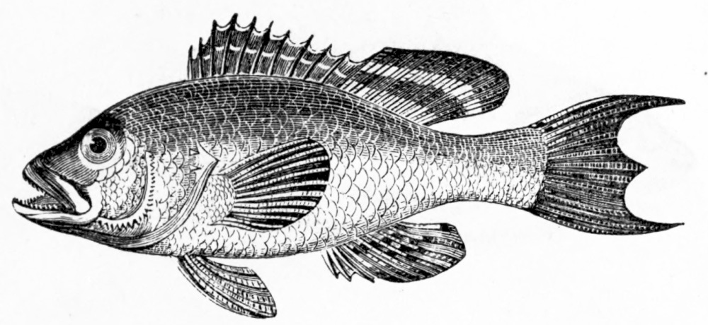 Fishes constituted Linnæus’s fourth class of animals. They are all inhabitants of the water, in which they move by certain organs called fins. Those situated on the back are called dorsal fins; those on the sides, behind the gills, pectoral fins; those below the body, near the head, are ventral; those behind the vent are anal; and that which forms the tail is called the caudal fin. Fishes breathe by gills, which, in most species, are situated at the sides of the head. Fishes rise and sink in the water, generally by a kind of bladder in the interior of the body, called an air-bladder. Some of them do not possess this organ, and consequently are seldom found but at the bottom of the sea, from which they can only rise by an effort. The bodies of these animals are usually covered with scales, which keep them from injury by the contact of the water.