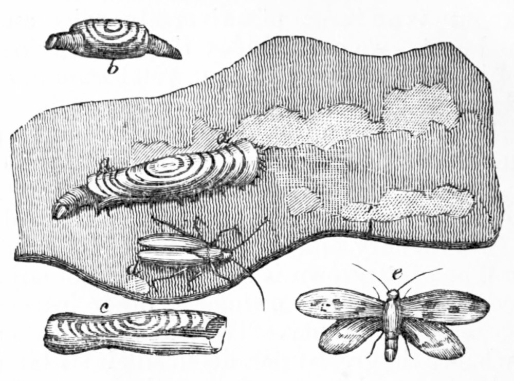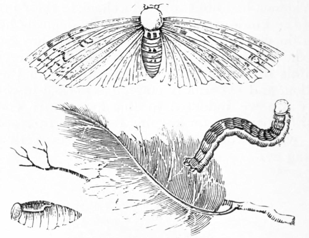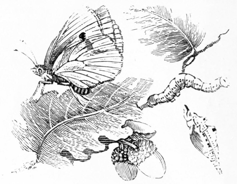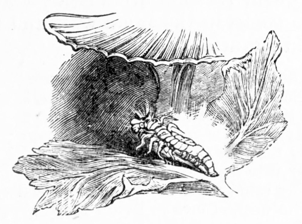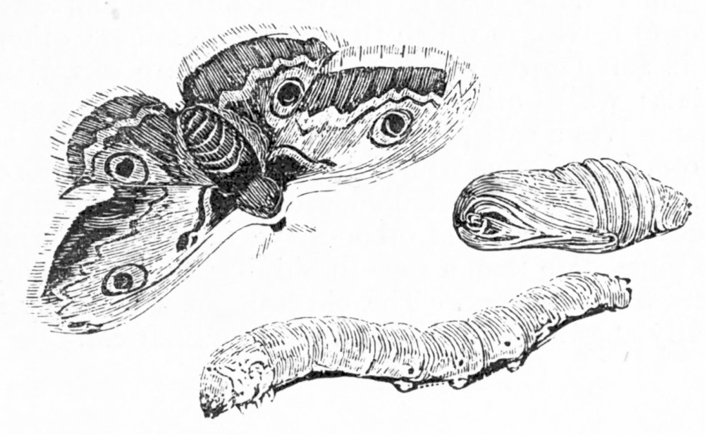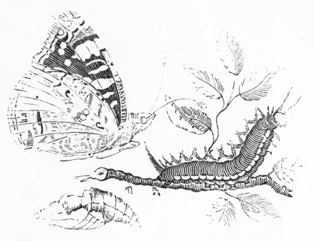 The fifth class of Linnæus comprised the Insects; and the branch of Zoology which treats of them is called Entomology. Nearly all insects go through certain great changes at different periods of their existence. From the egg is hatched the larva, which is a grub or caterpillar, and destitute of wings; this afterwards changes to a pupa, or chrysalis, wholly covered with a hard shell, or strong skin, from which the perfect or winged insect bursts forth. Spiders and their allies, which were included by Linnæus in the insects, issue from the egg in nearly a perfect state.