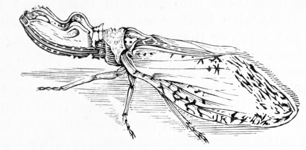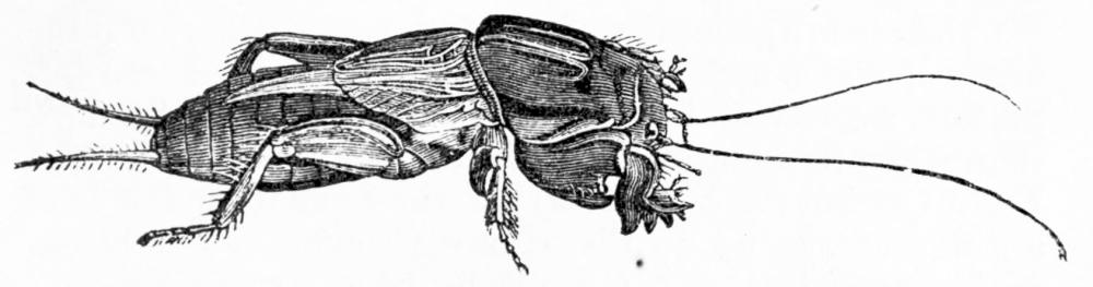 II. Hemipterous.—Having four wings, the upper ones partly crustaceous, and partly membranous; not divided straight down the middle of the back, but crossed, or incumbent on each other, as the cockroach.