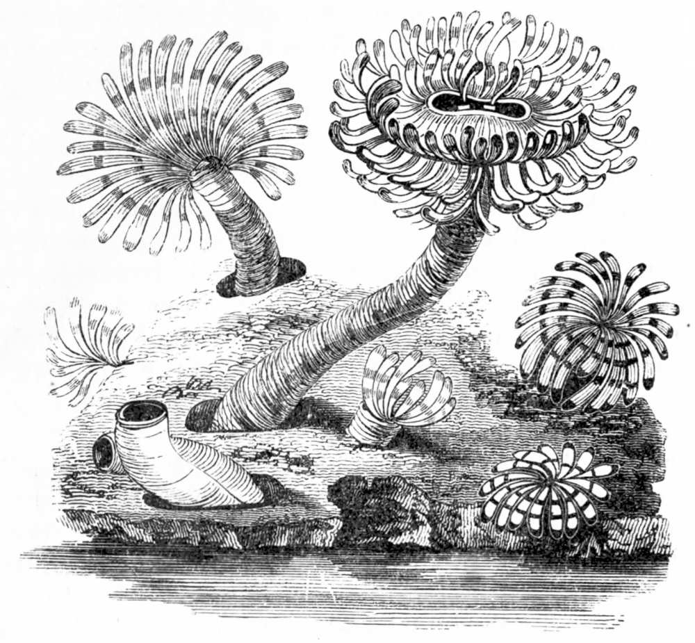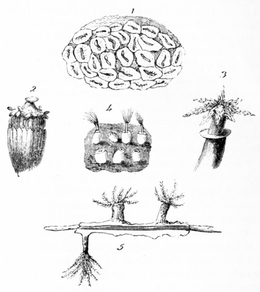 IV. Lithophyta.—Are composite Polyps, dwelling in cells in a calcareous base which they produce, as corals and madrepores.