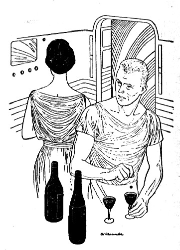 Their chronometer functioned perfectly, and they still regulated their living habits by it, using Greenwich Earth time. At seven in the evening they sat down to a fine meal. Knowing that tomorrow they might die, Louise had decided that tonight they would eat and drink as well as they could, and she had selected a Christmas special. She had merely to pull a lever, and the food had slid into the oven, to be cooked at once by an intense beam of high-frequency radiation. Jim himself had chosen the wine and the brandy—one of the peculiarities of the marak was that it did not affect the actual enjoyment of alcoholic drinks in the slightest, and one of the sights of the Solar System was to see an addict who was also drunk.