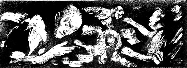 Shuffling the cards again, MacPherson wished the other men would say something; it wasn't fair of them to make him carry the conversation. Professor Avery, who had cut his physics classes in order to join the morning's party, sat in glum silence. His plump face was pale, and behind thick-lensed spectacles which enlarged his eyes grotesquely, he blinked as he watched the flickering cards. Dr. Neill, from Physical Chemistry, was tapping his toe against the table leg, watching Rothman, who stood at the window, waiting.