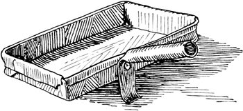 Bäuerliche Altertümer: Sechs alte Zinnkrüge aus dem Egerland; 18. Jahrh. Buntbemalte Egerländer Wiege; 18.-19. Jahrh. Bettüberzug, Zudecke und Polster, blau und weiß gewebt, egerländisch; 18. Jahrh. Sieben Amulette wie sie im Egerland an den Bettvorhängen der Wöchnerinnen angebracht wurden. Zwei desgl. unter Glas, rund. Ein desgl. desgl. viereckig. Heiligenbild mit schwerem Rahmen; 18. Jahrh.