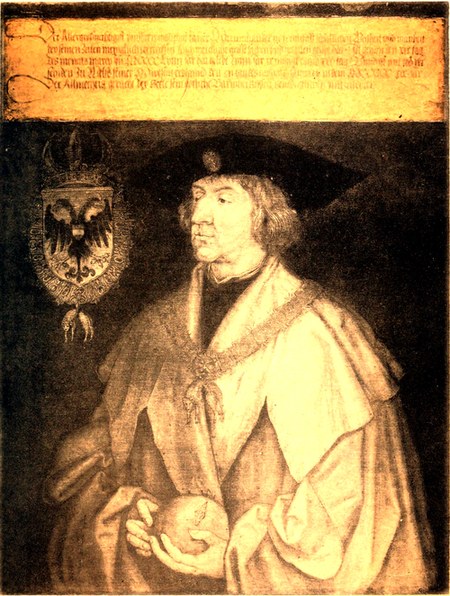Historische Blätter: Gedruckter Wandkalender für 1481 mit kolorierter Holzschnittrandleiste. — Zwei Einblattdrucke des 15. Jahrh. 1. Jncipit epistola beati bernardi de modo regendi se et familiam. Gedruckt zu Augsburg durch Ginther Zainer von Reutlingen. 2. Die artickel begriffen auß der bull der vollen genaden unsers heiligen vaters pabst Sixti des vierden wider die turcken. — Wagen mit Reisenden und Wirtshaus. Kupferstich, der Mitte des 16. Jahrh. — Alchemist. Kupferstich. Ende des 16. Jahrh. — Ausmarsch der Franzosen aus Mainz. Radierung. 1793. — Kostümkleidefiguren. Kupferst. ca. 1810. — Die siegreich österreichischen Truppen paradieren vor dem König in Neapel. Kolorierter Kupferstich. 1815. — Ansicht der feierlichen Grundsteinlegung der Ludwig-Wilhelms-Brücke über die Donau bey Ulm, am 15. Oktober 1829. Lithographie. — Ballet der Münchener Radiweiber im Bockkeller. 1845. Farbige Lithographie von M. Veith. — Spottblatt auf Louis Napoleon. Lithographie. 1859.
