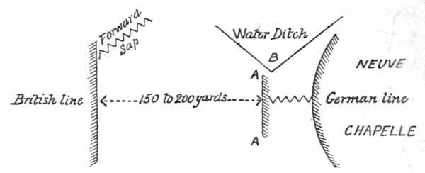 Through the mud to the trenches—French reserves in the woods—Hidden batteries—Unwise photography—Shrapnel too close for comfort—Chased by shell-fire—In Hooge dug-outs—Reminiscences of the first Battle of Ypres—A tour of the first-line trenches in the rain—Loopholes—Views by periscope—Sharpshooting—A mouthful of glass—Photographs in Zillebeke Churchyard—Calling down shrapnel fire—A scamper out of Zillebeke—Hooge at night—A mine explosion—Mixed plans—Storming the mine-crater—Amusing German prisoners—The London "'bus" abroad—A timely evacuation of a house in Ypres—General Haig's order before Neuve Chapelle—Heavy British gunning—The taking of the town of Neuve Chapelle—The failure to go on—The reasons—The blame—German attack on St. Eloi—Fine work by the Rifle Brigade—Territorials—Ploegsteert and the Ploegsteert Wood—A run from Kemmel to Dickebusch—A shell in La Clytte
