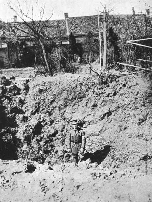 | View showing depth of 17-inch shell-hole in the garden of a château between Poperinghe and Elverdinghe. | 173 |