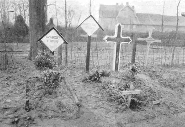 | Graves of Capt. Annesley, Lieut. Drake, and Capt. Peto, all of the 10th Hussars, in a graveyard on the Menin Road | 213 |