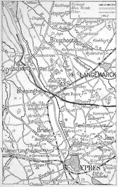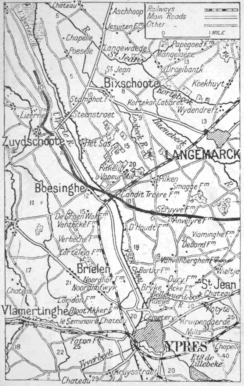 Rumours—Lord Kitchener's visit—A horticultural joke—German hate manufactured in Lille—Red Cross assistance—The peculiar exploit of Mapplebeck of the Flying Corps—A joy-ride through Ypres and up the Menin Road—The commencement of the fight for Hill 60—The first coming of the German gas—The plight of the French Reservists—The magnificent work of the Canadian Division—In support of the[xi] French line—Tangled traffic on the road to Ypres—Shelled in Elverdinghe—Deadly howitzer shells—Poperinghe bombarded—Belgian refugees—The aviation park evacuated—The want of traffic organisation—The 200 Canadian heroes in St. Julian—Conflicting reports about the capture of Lizerne—International failure to coincide as to the results of battle—British infantry attacks to win back the lost ground—Children at play near a battle-field—Artillery work in modern warfare—An attack on Lizerne by British field guns and French Zouaves—The ethics of gun-fire—Lizerne proves a hard nut to crack—British counter-attacks along the salient line abortive—17-inch Hun shells—A big shell lights in a château garden—Shell plus chandelier—A car in a Belgian ditch—Billets in Wormhoudt—Welcome rest