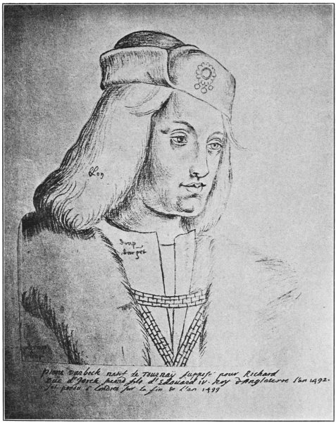 Of course Perkin Warbeck’s real adventures, in the sense of dangers, began after his claim to be the brother of Edward V was put forward. Henry VII was not slow in taking whatever steps might be necessary to protect his crown; there had been but short shrift for Lambert Simnel, and Perkin Warbeck was a much more dangerous aspirant. When Charles VIII invited him to Paris, after the war with France had broken out, Henry besieged Boulogne and made a treaty under which Perkin Warbeck was dismissed from France. After making an attempt to capture Waterford, the adventurer transferred the scene of his endeavours from Ireland to Scotland which offered him greater possibilities for intrigue on account of the struggles between James IV and Henry VII. James, who finally found it necessary to hasten his departure, seemed to believe really in his pretensions,14 for he gave him in marriage a kinswoman of his own, Catherine Gordon, daughter of the Earl of Huntly—who by the way was re-married no less than three times after Perkin Warbeck’s death. Through the influence of Henry VII, direct or indirect, Perkin had to leave Scotland as he had been previously forced from Burgundy and the Low Countries. Country after country having been closed to him, he made desperate efforts in Cornwall, where he captured St. Michael’s Mount, and in Devon, where he laid siege to Exeter. This however being raised by the Royal forces, he sought sanctuary in Beaulieu in the New Forest where, on promise of his life, he surrendered. He was sent to the Tower and well treated; but on attempting to escape thence a year later, 1499, he was taken. He was hanged at Tyburn in the same year.