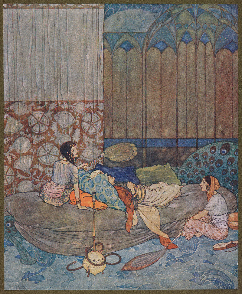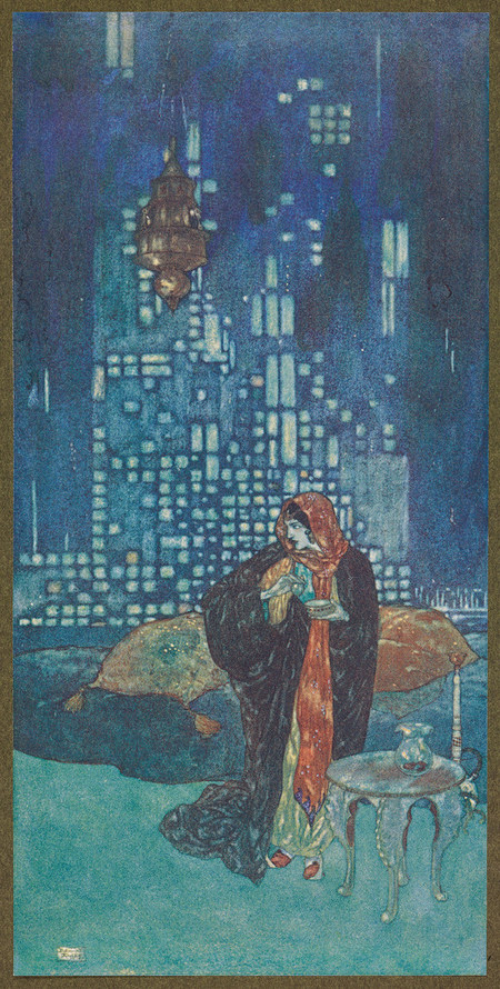 Scheherazadè, the heroine of the Thousand and one Nights, ranks among the great story-tellers of the world much as does Penelope among the weavers. Procrastination was the basis of her art; for though the task she accomplished was splendid and memorable, it is rather in the quantity than the quality of her invention—in the long spun-out performance of what could have been done far more shortly—that she becomes a figure of dramatic interest. The idea which binds the stories together is greater and more romantic than the stories themselves; and though, both in the original and in translation, the diurnal interruption of their flow is more and more taken for granted, we are never quite [Pg vi]robbed of the sense that it is Scheherazadè who is speaking—Scheherazadè, loquacious and self-possessed, sitting up in bed at the renewed call of dawn to save her neck for the round of another day. Here is a figure of romance worth a dozen of the prolix stories to which it has been made sponsor; and often we may have followed the fortunes of some shoddy hero and heroine chiefly to determine at what possible point of interest the narrator could have left hanging that frail thread on which for another twenty-four hours her life was to depend.