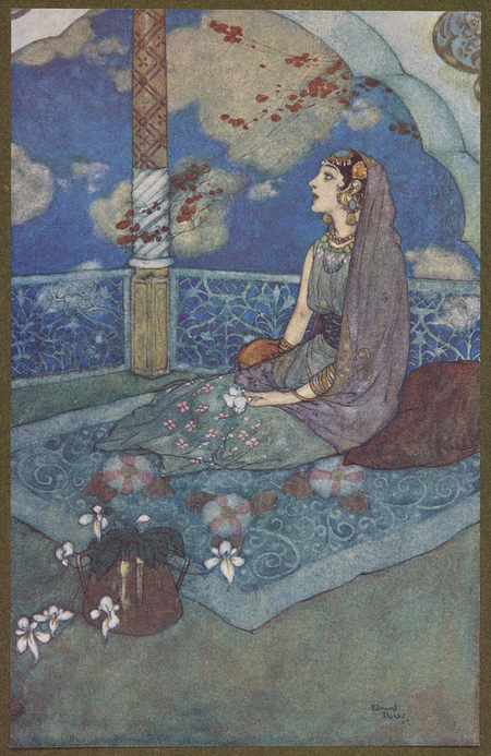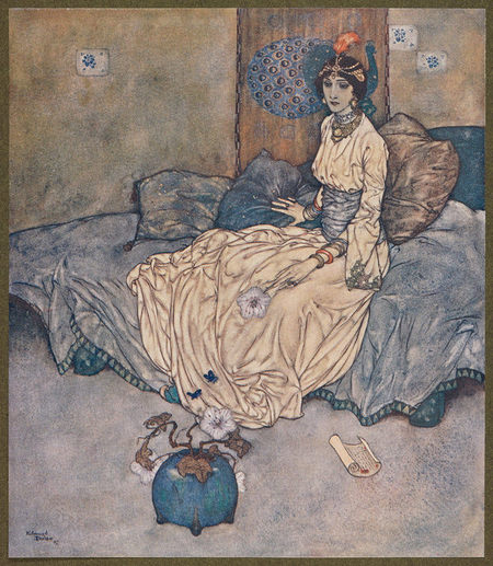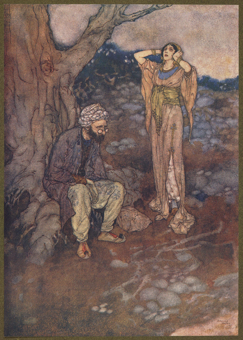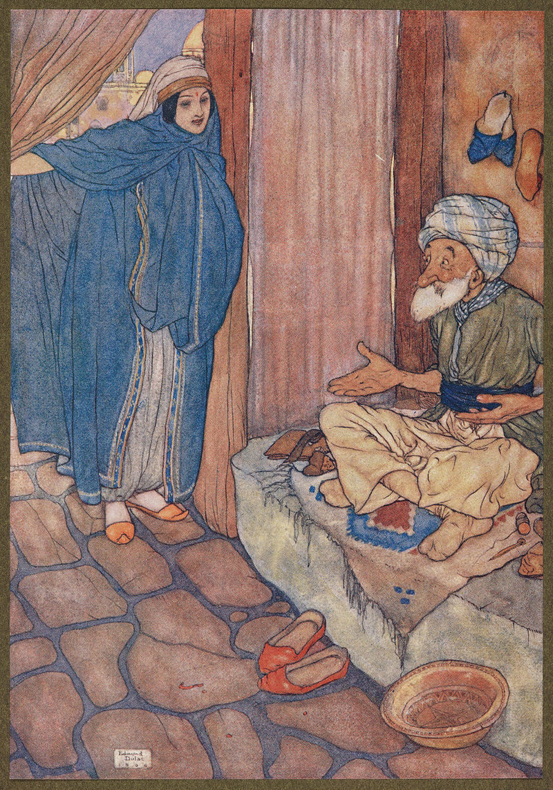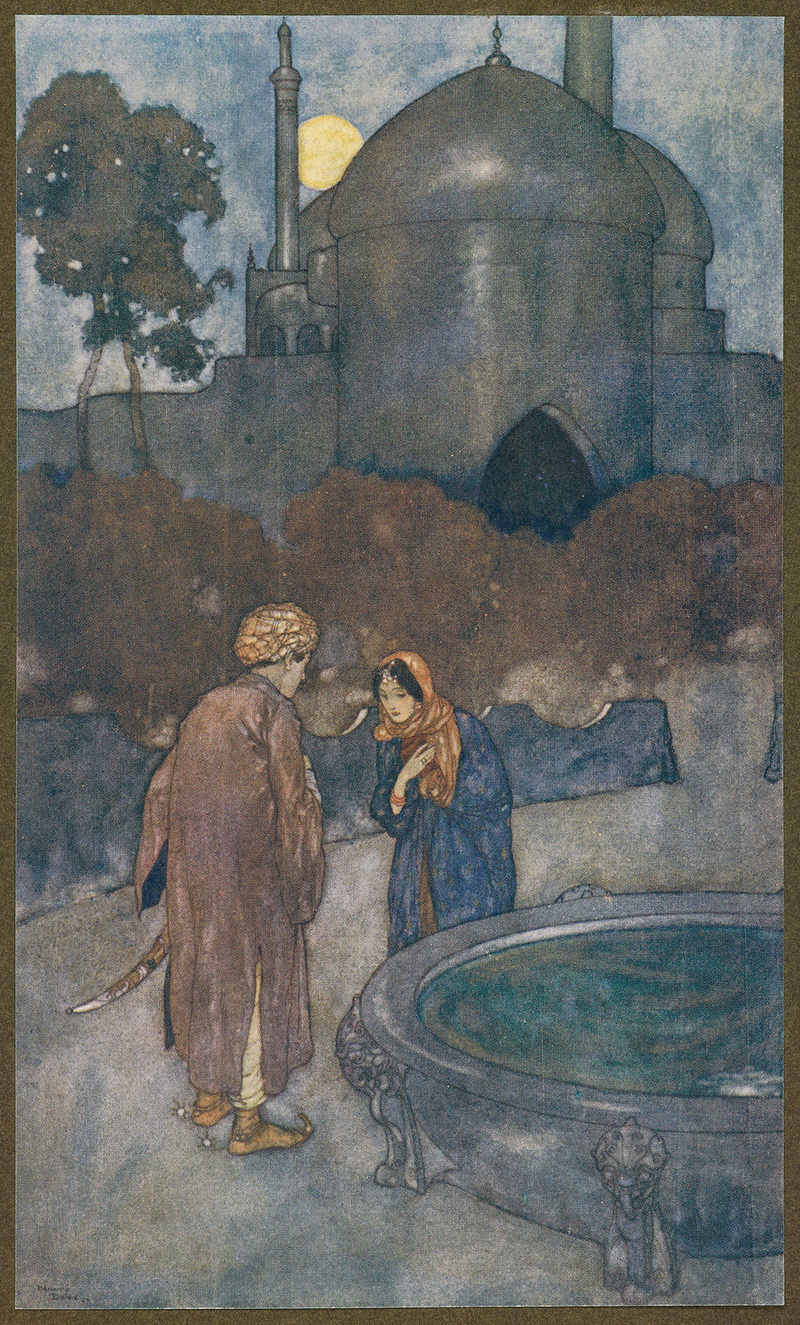 The sage answered, "O moon of beauty, I am but the dust which lies upon the road by which thou art to travel. Yet I come as a messenger from the King's son who hath sent me to bring thee with all speed to a chamber in the royal palace where he now awaits thee."