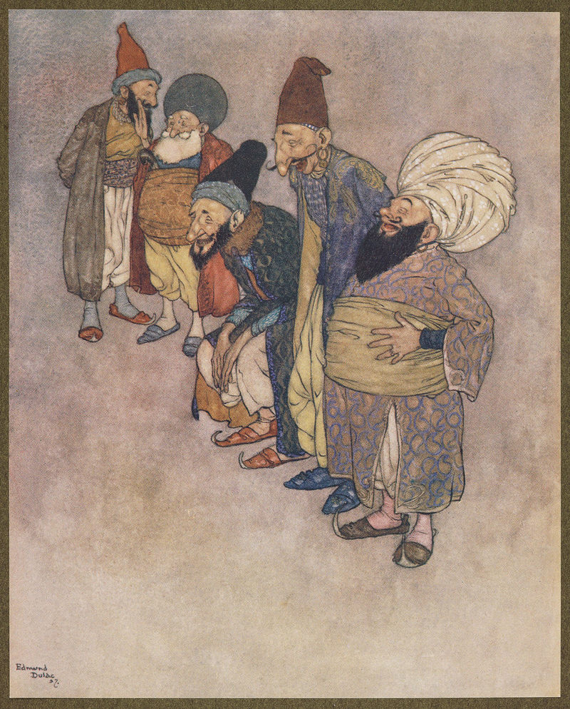 "Well, if I must!" said the fisherman, resigning himself to the inevitable; "but make it short, for truly I have small stomach left in me now for the hearing of tales."