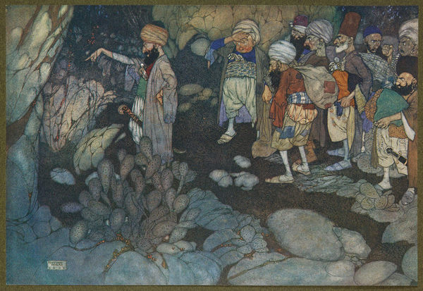 The fisherman, being of a mild spirit and with no heart for revenge, sat down to consider what he should do, and all the while the imprisoned Genie continued to appeal to him for compassion with loud promise and lamentation. So at last, the fisherman, having the fear of God before his eyes, after he had extracted from the Genie a most solemn vow to leave him unharmed, drew out the stopper of lead and released him.