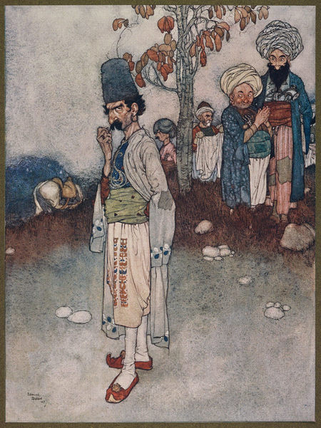 So he departed and came in princely arms to the city of Harran, and there offered his service to the King against all his enemies. Now, no sooner had the King looked upon the youth than his heart was drawn toward him because of his beauty and the secret ties of blood, but when he asked from what country he came, Codadad answered, "I am the son of an emir of Cairo, and wherever there is war I go to win fame, nor do I care in what cause I fight so long as I be proved worthy."