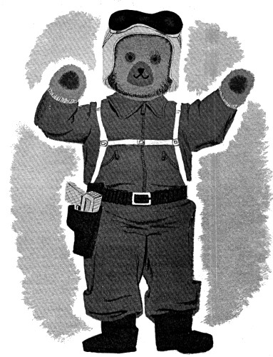 The President's gaze was returned by two shiny black eyes, set on either side of a little brown muzzle with a gentle, stitched-on smile. Agent X-45 was clad in flight helmet, miniature jacket and tiny boots, with a baggy pair of brown canvas trousers belted at the waist with a bandolier holding a dozen small wooden bullets, and dangling a patent-leather holster containing a plastic water pistol. And he wore a small parachute and harness.