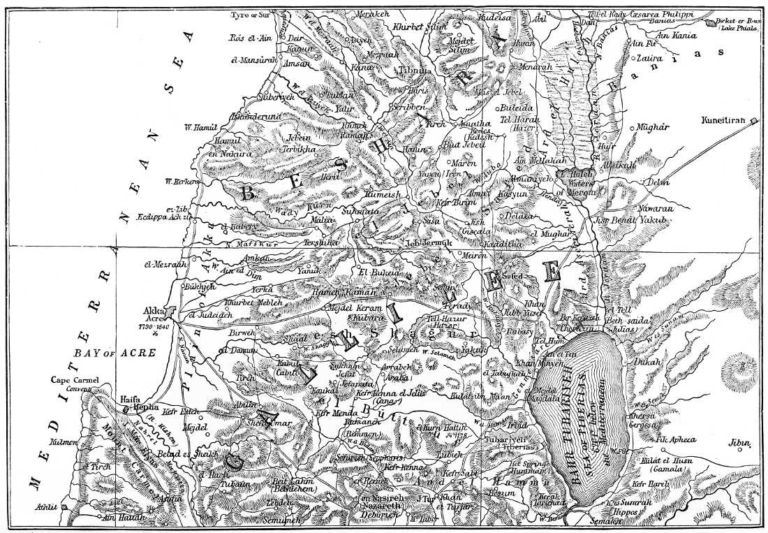 In the Illustrations, which form so large a part of the present volume, fidelity rather than artistic effect has been aimed at. Many of the engravings are from drawings made on the spot, but a greater number are from photographs. Those of Messrs. Bergheim and Nicodemus of Jerusalem, and Madame Bonfils of Beyrout, have been largely used for this purpose; and the writer desires to express his gratitude for the liberality with which the Committee of the Palestine Exploration Fund have placed their admirable series at his disposal.