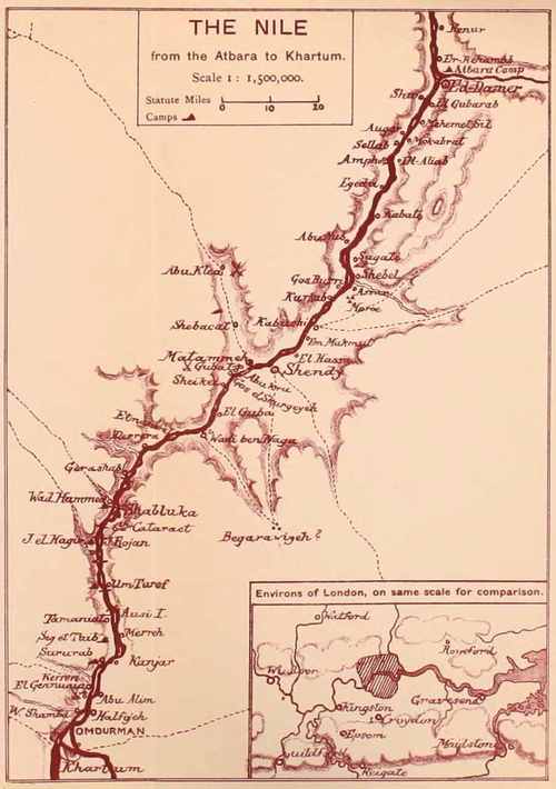 Our recent campaigns in the Sudan have been unique in military history from the fact that the army's line of communication with its base was ultimately over twelve hundred miles in length. Every ounce of food, with the exception of a little fresh meat occasionally obtained along the line of march, had to be conveyed from Cairo by river, rail, or camel. The best thanks of the public are due to the[26] indefatigable labours of the transport officers and men, many of whom were not brought by their work within the area which will be covered by the forthcoming medal.