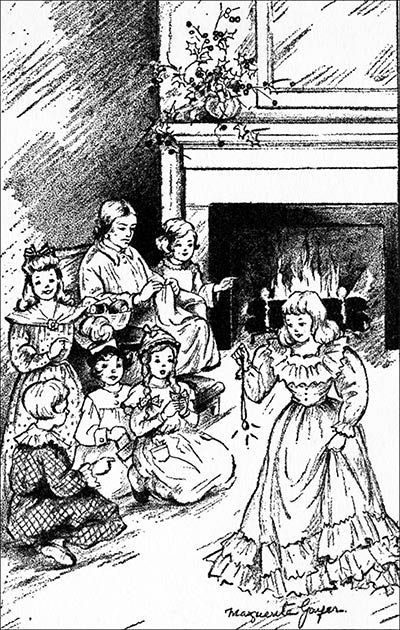 “Tonight will be our last one here,” said Connie, stooping to pick up a silver paper which had fallen from the Christmas tree. “I wish it never would end.”