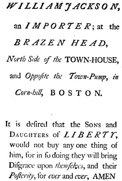 | Illustrations: Statue of James Otis, 69; Jonathan Mayhew, 71; Autograph of Charles Chauncey, 71; George III., 76; Fac-simile of Handbill, Faneuil Hall Meeting, Oct. 28, 1767, 77; of Broadside, The True Sons of Liberty, 78; List of Merchants importing contrary to agreement, 79; Broadside proscribing William Jackson, 80; Revere's Cut of the Landing of Troops in Boston, 1768, 81; John Dickinson, with Autograph, 82; Autograph of James Bowdoin, 83; William Livingston, 84; Liberty Song, 86; Massachusetts Liberty Song, 87; Fac-simile of Instructions to Representatives, signed by Richard Dana and William Cooper, 87; Handbill on the Anniversary of the Boston Massacre, 89; Handbill of Warning, Dec. 2, 1773, 92; Philadelphia Poster about the Tea-Ships, 93; Josiah Quincy's Manuscript Dedication of his Port-Bill Tract, 94; Quincy Mansion, 96; Handbill announcing the Port Bill and Regulating Bill, 97; Handbill of General Brattle's Letter, 1774, 98; Autograph of Thomas Cushing, 99; Signers of the Congress of 1774, 102; Satirical Print, Virtual Representation, 103; Josiah Quincy's Diary, 105; Lord North, 107; Chatham, 109; Richard Price, Portrait and Autograph, 111; Autograph of Lord Dartmouth, 111. | |