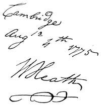 | Illustrations: Autograph of Admiral Graves, 114; Notice of Committee of Correspondence, signed by William Cooper, 115; Autograph of Jedediah Preble, 116; of Joseph Hawley, 118; Roads of Roxbury and beyond, 120; Roads between Boston and Marlborough, 121; Heath's Account of the Fight at Menotomy, 126; General Heath, with Autograph, 127; Autograph of Ethan Allen, 128; Ruins of Ticonderoga, 129; Pen-and-Ink Sketch of the Roxbury Lines, 130; Warren's Last Note, 132; Notice to the Militia, 133; Order of the Committee of Safety, 135; Autograph of Colonel William Prescott, 135; of John Brooks, 136; of General Howe, 136; of John Stark, 137; of Richard Pigot, 137; of Governor Tryon, with seal, 140; of Joseph Reed, 141; Washington's Heads of Letter, July 10, 1775, 141; Letter of John Hancock, June 22, 1775, 143; Autograph of General Gage, 145; Handbill thrown within the British Lines, 147; Views of Country around Boston from Beacon Hill, 148, 149, 150, 151; A Vaudevil on The Boston Blockade, 154; Playbill of Zara, 155; Autograph of General Knox, 156; Views of Boston and of the Castle, 157; Proclamation of Washington, 159; Guy Carleton, with Autograph, 164; Seal of Lord Dunmore, 167; Plan of Attack on Fort Moultrie, 169; Plan of Attack on Charlestown, S. C., 170; William Moultrie, 171. | |