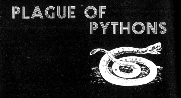 The Project Gutenberg EBook of Plague of Pythons, by Frederik Pohl This eBook is for the use of anyone anywhere at no cost and with almost no restrictions whatsoever. You may copy it, give it away or re-use it under the terms of the Project Gutenberg License included with this eBook or online at www.gutenberg.org/license Title: Plague of Pythons Author: Frederik Pohl Release Date: April 19, 2016 [EBook #51804] Language: English Character set encoding: ASCII *** START OF THIS PROJECT GUTENBERG EBOOK PLAGUE OF PYTHONS *** Produced by Greg Weeks, Mary Meehan and the Online Distributed Proofreading Team at http://www.pgdp.net
