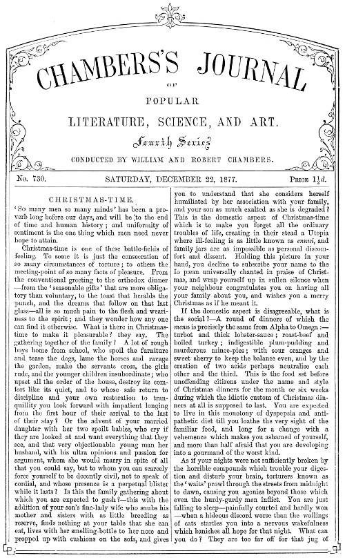 | No. 730. | SATURDAY, DECEMBER 22, 1877. | Price 1½d. |