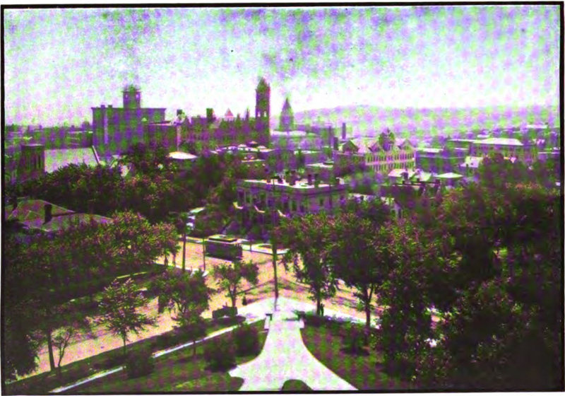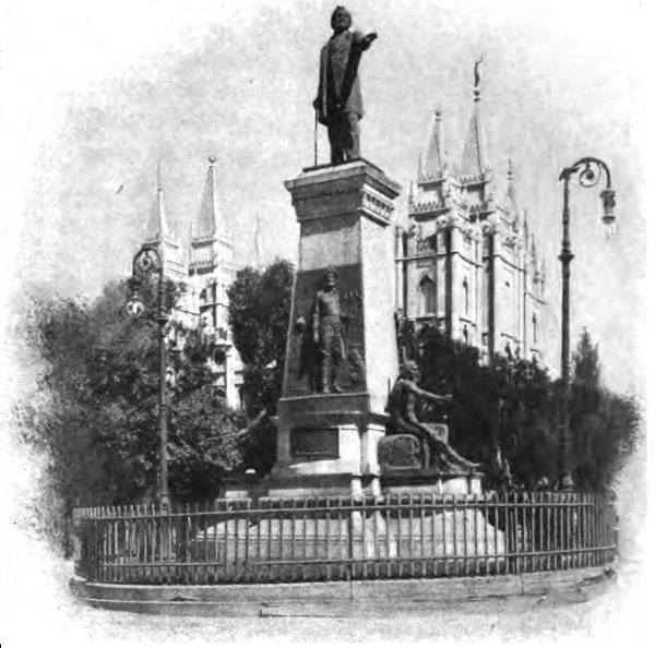 Salt Lake came into life on July 24, 1847, when there was not an American settlement west of the Missouri and California was under Mexican dominion. With the arrival of the first train of one hundred and twenty-one wagons began far western agriculture. The new comers put their hands to the plow the clay of their coming and began the first irrigation canal built by the white race in America. And while redeeming the 23 wilderness and making the deserts blossom, they built a city with such careful planning of streets and open places, of statues and public buildings, such attractions of tree and vine, of home and temple, of park and boulevard, that it has become a place of great interest to all travelers, even though world-wide weary.