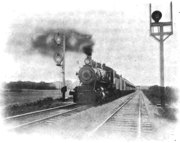 Leaving Omaha, the Overland Limited passes through South Omaha, third place in the United States in the packing of meat products. Just beyond may be noted to advantage the block safety system, in operation on the Overland Route all the way to San Francisco.