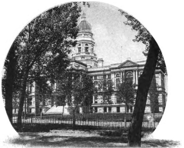 Cheyenne is a great livestock center, has railway shops, is the junction for the Denver and Kansas City branch of the Union Pacific, and is making progress as a mercantile and manufacturing place. With its beautiful Carnegie library and half million dollar Federal building and other excellent buildings, there is little to recall the town of the early sixties, when its reputation was extended as a shipping center for the long trails of cattle, and noted as a famous place for carved saddles. Among its first pioneers was James B. Hickok (Wild Bill), a brave gentleman, a great scout and guide, and noted throughout the West as a superb horseman, and one of the most wonderful marksmen with a six-shooter that ever lived. He was chief of scouts under Custer in the Indian campaigns of 1868-69 and the latter paid him high tribute in his book, “My Life on the Plains.”