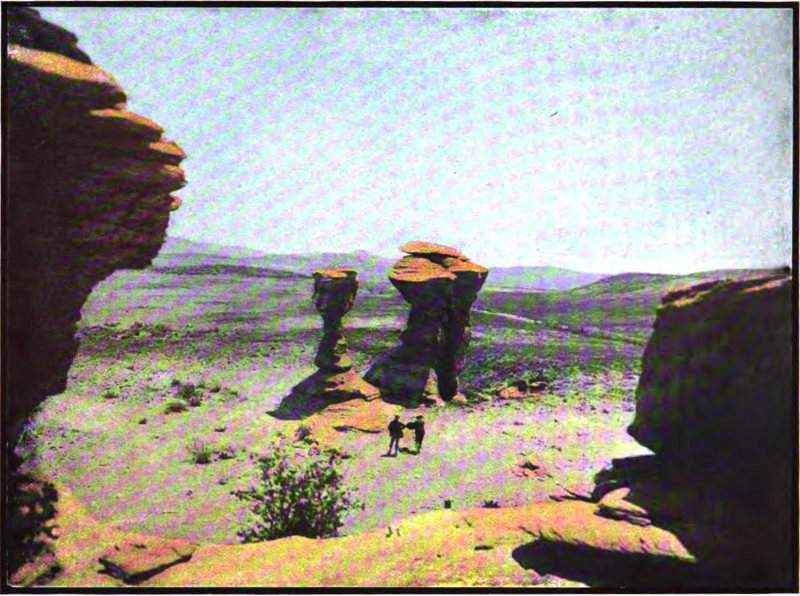 EROSION HAS SCULPTURED MANY MONUMENTS OF WEIRD SHAPES AND BRIGHT COLORS FROM THE RED SANDSTONE OF THE LARAMIE PLAINS