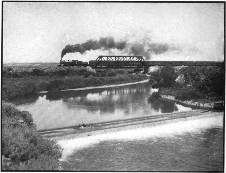 THE OVERLAND ROUTE BEGINS AT THE MISSOURI, CROSSING FROM COUNCIL BLUFFS TO OMAHA ON A DOUBLE TRACK BRIDGE OF STEEL