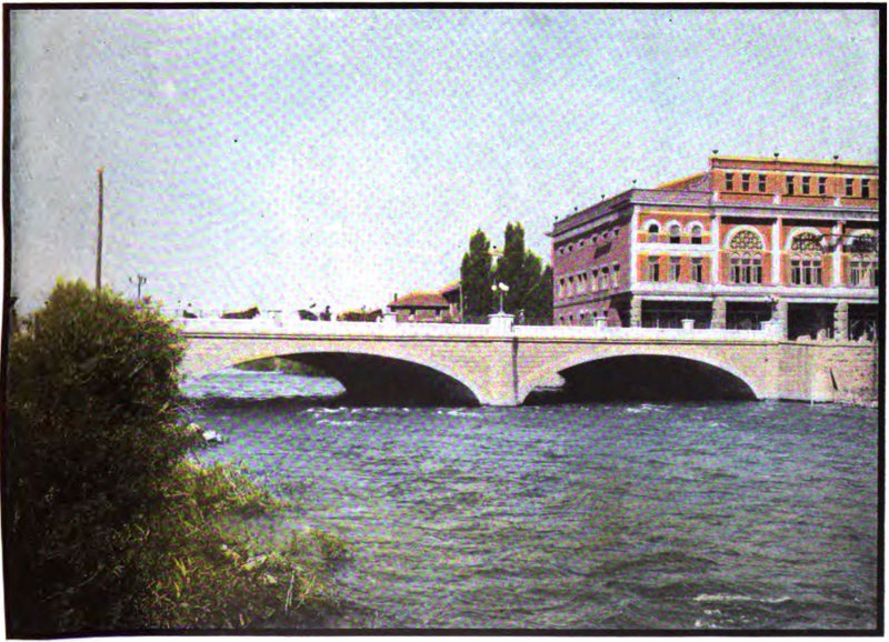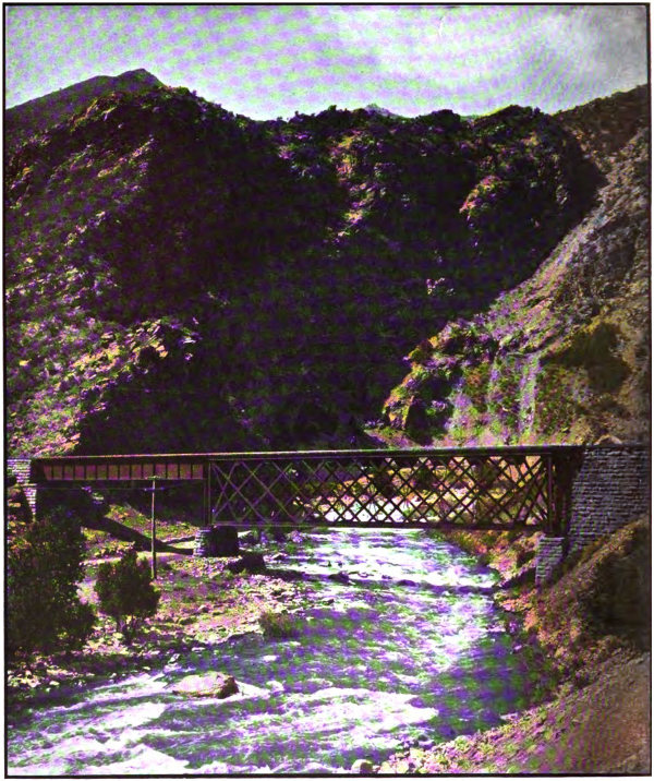 ROCK RIVER, FULL OF LUSTY TROUT, COMES SPARKLING FROM DISTANT SNOW PEAKS AND PASSES UNDER A MODERN BRIDGE