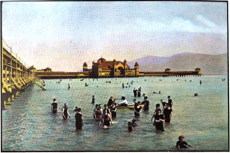 The greatest charm of Salt Lake City is in the many broad, tree-lined avenues, with streams of water flowing along the curbs. On either side in the principal residence districts, are beautiful homes, largely built from the proceeds of Utah mines. The public buildings are attractive, and the city park a resting place with lovely lawns and flowers and groves. The hot springs (within the city) and Fort Douglas should be visited, nor should any stranger depart without passing an afternoon at Saltair, the principal bathing resort on Salt Lake, with its immense pavilion, promenade walks, and wharves extending far out into the salt water. Here one may float for hours in warm, buoyant salt water—buoyant and salty indeed beyond any other water on earth save the Dead Sea.