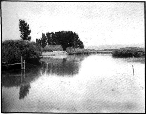 From Omaha westward to the first glimpse of the white summits of the Rockies, the way is through visions of country loveliness. As the Limited ascends on its journey westward and rises above the corn levels nearer the Missouri, meadows join the grain fields. Stacks of hay are deployed over the plains as are soldiers on a battlefield. The homes of farmers are impressive with evidence of a prosperous and proper pride. The fences are straight and symmetrical, the houses all well painted; there are great red barns to remind you of Pennsylvania, and active windmills tower over all as landmarks. The scene is given life by high grade cattle, sleek horses, and flocks of well kept sheep. Above is bent over the landscape a sky of clear blue, where troop the vagrant clouds amid its arches, and all is permeated with air pure and sweet beyond description. Such is Nebraska.