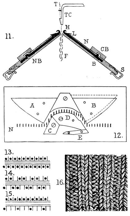 | Loop Formation with the Latch Needle-The Flat Knitter-Working of Cam Boxes to Give the Various Stitches-Patterns Produced | |