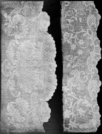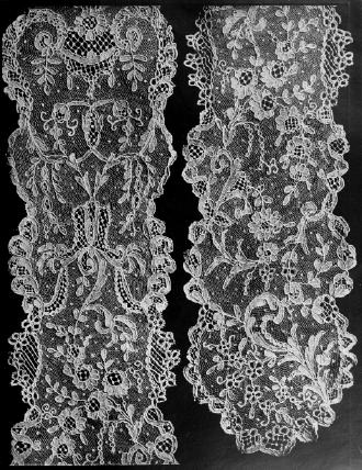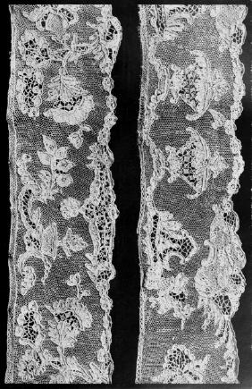 | LXI. | Two Borders of Needle-Point Lace à Réseau, called Point D'Alençon |
