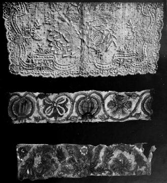 | V. | (1) A Piece of Bobbin-made Lace (2) Darned Work with White Linen Thread (3) Portion of a Mummy Cloth |
