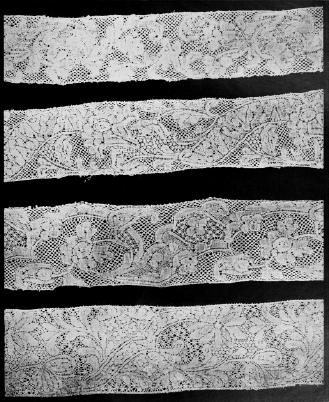 | LXII. | Four Borders of Needle-Point Lace à Réseau, called Point D'Alençon |