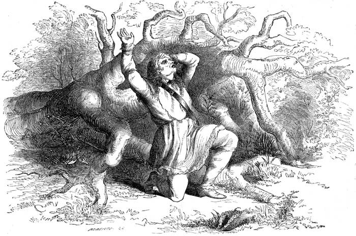 9Frantic with fright, the noble animal went careering through the woods, rearing and plunging in his madness, inflicting upon his tortured rider countless wounds and blows as he endeavored to dash him against the trees, or rushed through the tangled brush, lacerating the flesh of both with innumerable thorns and briers. In one of the mad dashes which the horse gave through the unpitying forest, Kenton's arm came with such force against a tree that it was broken—he knew it by its becoming so limp and helpless, as well as from the knife-like pain which darted from it. The wretched man could only hope that the horse would some time tire; that, wearied out with its useless efforts to free itself from its burden, it would subside into some quiet, which might give a moment's ease to his aching and mangled limbs; but he hoped in vain!