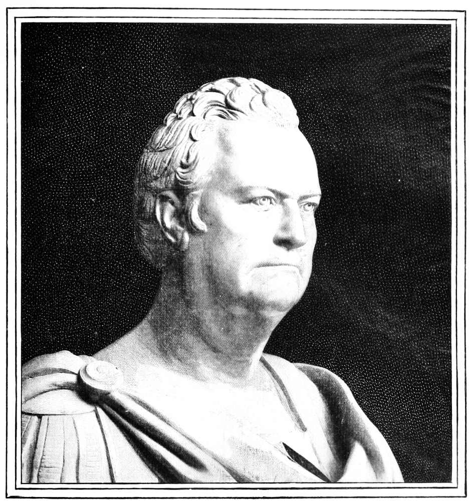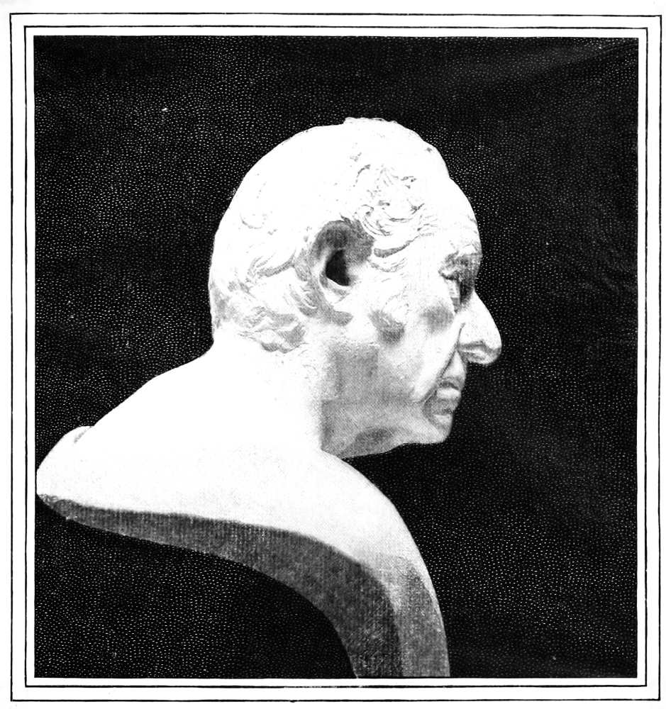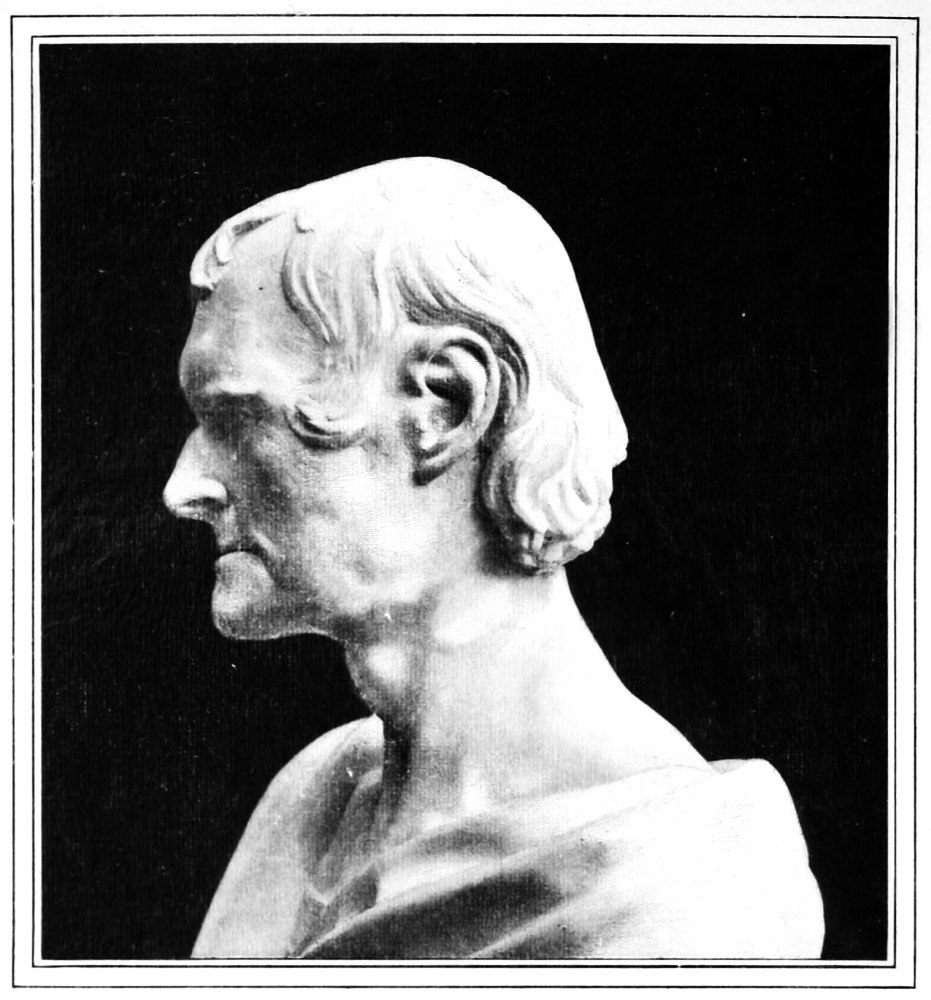 Twelve days after the birth of Rush, Joseph Wright came into the world, inheriting from his mother her artistic temperament. At sixteen he accompanied the family to England, and received instruction from Benjamin West and from his brother-in-law, Hoppner. He returned to America late in 1782, bringing a letter of commendation from Franklin to Washington. In 1783, he painted a portrait of Washington{10} from life, at Rocky Hill, New Jersey, and the next year was permitted to make a cast of Washington’s face, which is said to have been broken irreparably in removing from the skin,—a story the veracity of which may be akin to that in regard to Browere’s mask of Jefferson, hereafter to be told. However this may be, Wright made a bust of Washington, for which Congress paid him “233⅓ dollars,” and also modelled in wax a laureated profile portrait of Washington, which is of both artistic and historical value. Wright died in Philadelphia, during the yellow fever epidemic of December, 1793, and his bust, by his friend Rush, whom he is said to have instructed in clay modelling, belongs to the Academy of the Fine Arts, at Philadelphia.