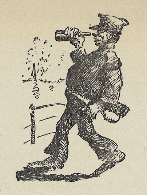 “Here,” concluded the Old Soak, unscrewing the top of his pocket flask, “here is to the mammal of unrighteousness!”