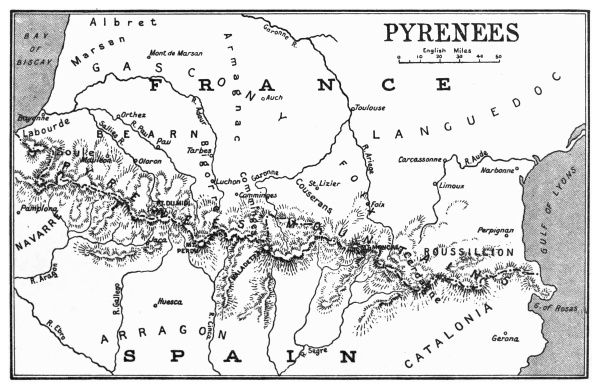 The Eastern Pyrenees have, to my mind, been unduly neglected, and yet they present scenes of great beauty, and are very easily reached. To botanists they should be especially attractive. The Val d’Eyne, near Mont Louis, is known to possess flowers found nowhere else in the range. The ravine of the Aude is as fine as any in the Hautes Pyrénées. There303 are peaks that run up to 10,000 feet, and are covered with snow all the year, and if the glaciers be insignificant, glaciers are not essential to beauty. There are more mountain tarns here than elsewhere, and some of these the largest in the Pyrenees. In ecclesiastical architecture this is by far the richest portion of the chain, as the churches have not been wrecked by the Huguenots as in Béarn and Bigorre. And what is more, there is less rain, there are clearer and bluer skies. Some of the watering-places are sweet and sheltered nooks where one can be in summer sunlight early in April, even at the end of March, sheltered from every wind, and with excursions possible all about them, and what is more, are not so fashionable, not so savouring of Paris as Bagnères and Luchon, Cauterez, and Eauxbonnes. In the heats of summer no more cool and invigorating climate can be found than in some of those towns and villages on lofty plateaux, like Mont Louis. As to the Pyrenees in general, many best able to judge and with widest experience of mountain scenery, prefer them to the Alps of Switzerland and of Tyrol, so overrun with the tripper and the herds conducted by Cook. The colouring is richer and more varied, the foliage, the flowers more abundant; and the peasantry have not lost their simplicity, as have the Swiss.