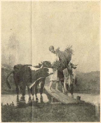 — Mi deziras prosperon al vi, Geert! — diras Jan kun petola rido. — La forĝisto estas konata pri sia bonhavo kaj krome ĉi tiu Marinjo estas diable ĉarma knabino, kiun povas envii ĉiuj aliaj knabinoj de la vilaĝo.
