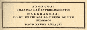 Esperante same favoran akceptadon de la dua numero, kiel estis tiu de la unua, kaj promesante entuziasman persistecon por komuna bono de la tutmonda samideanaro, restas kun respektplena servemo