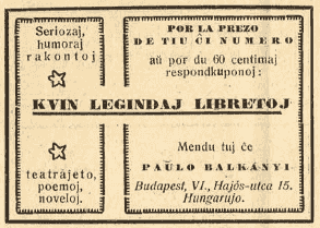 REDAKTEJO KAJ ADMINISTREJO: BUDAPEST VI, ANDRÁSSY-UT 81