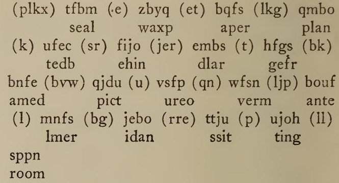 He reached out for the pad, tore off another sheet, and in two parallel columns set down the letters of the alphabet, one column transposed. There was a faint smile on his lips, as he turned again to the cipher and began to write in another line of letters under the original message.