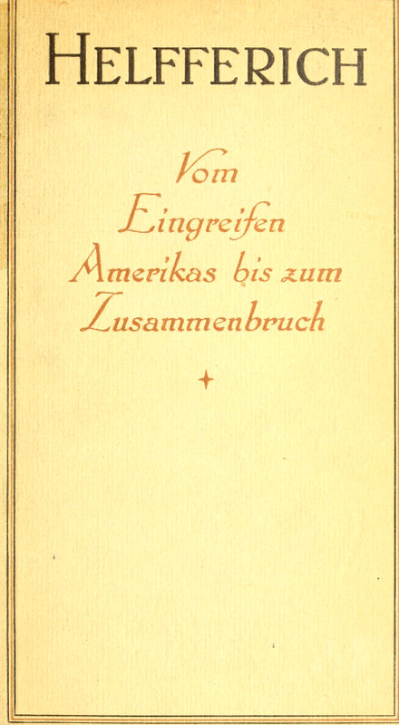 | Vorstoß auf Amiens 397, 398. Vorstoß an der Lys 399, 400. Zäher Widerstand der Feinde 400, 401. Hilfeleistung Amerikas 401–403. Energische Kriegsmaßnahmen in England und Frankreich 404, 405. Deutsche Offensive vom Damenweg bis zur Marne 406–408. Besorgnis in Paris 409. Eingreifen der amerikanischen Truppen 410, 411. Mißglückte österreichische Offensive am Piave 412, 413. Fortschreitende Paralysierung der Wirkungen des U-Bootkriegs 414–416. | |