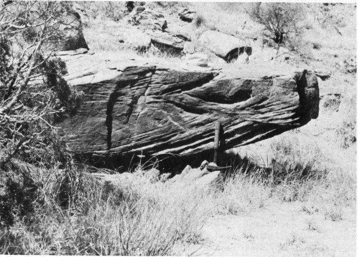 Fig. 11. This boulder, located near the foot of Triassic Peak along the Sad Monkey Railroad track, exhibits the cross-bedding typical of the Trujillo sandstones.