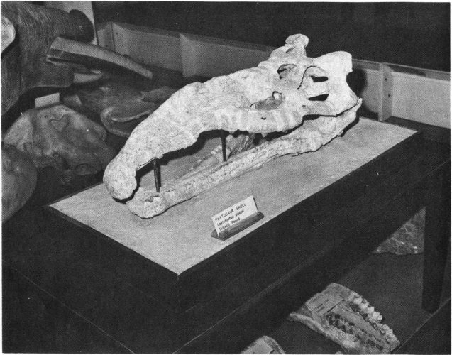 Fig. 13. The skull of this crocodile-like creature called a phytosaur is typical of the reptiles that inhabited the Palo Duro area during the Triassic Period. (Photograph courtesy Panhandle-Plains Historical Museum.)